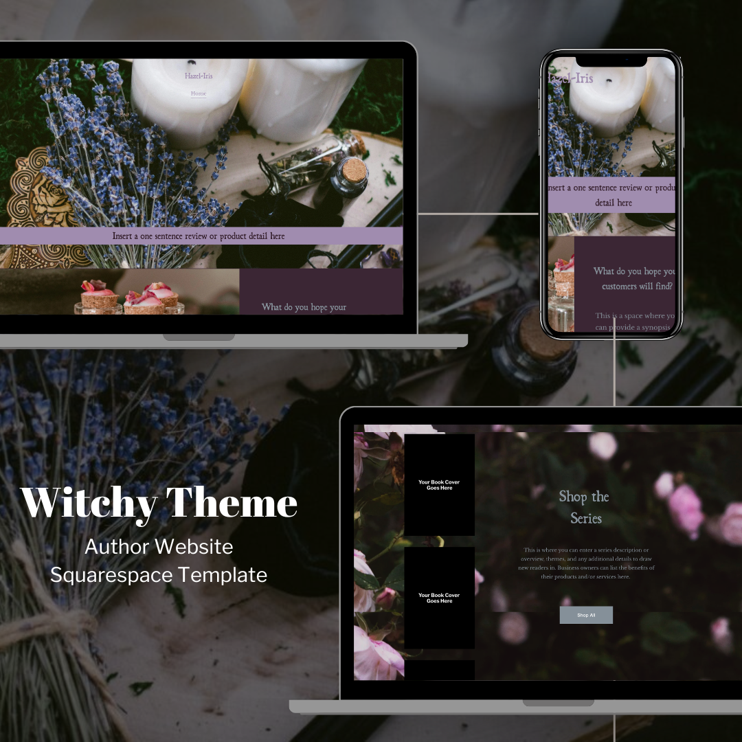 This witchy-themed, five-page Squarespace website template for authors is designed to showcase all of your work. Complete with newsletter forms, Instagram integration, and a blog.Â